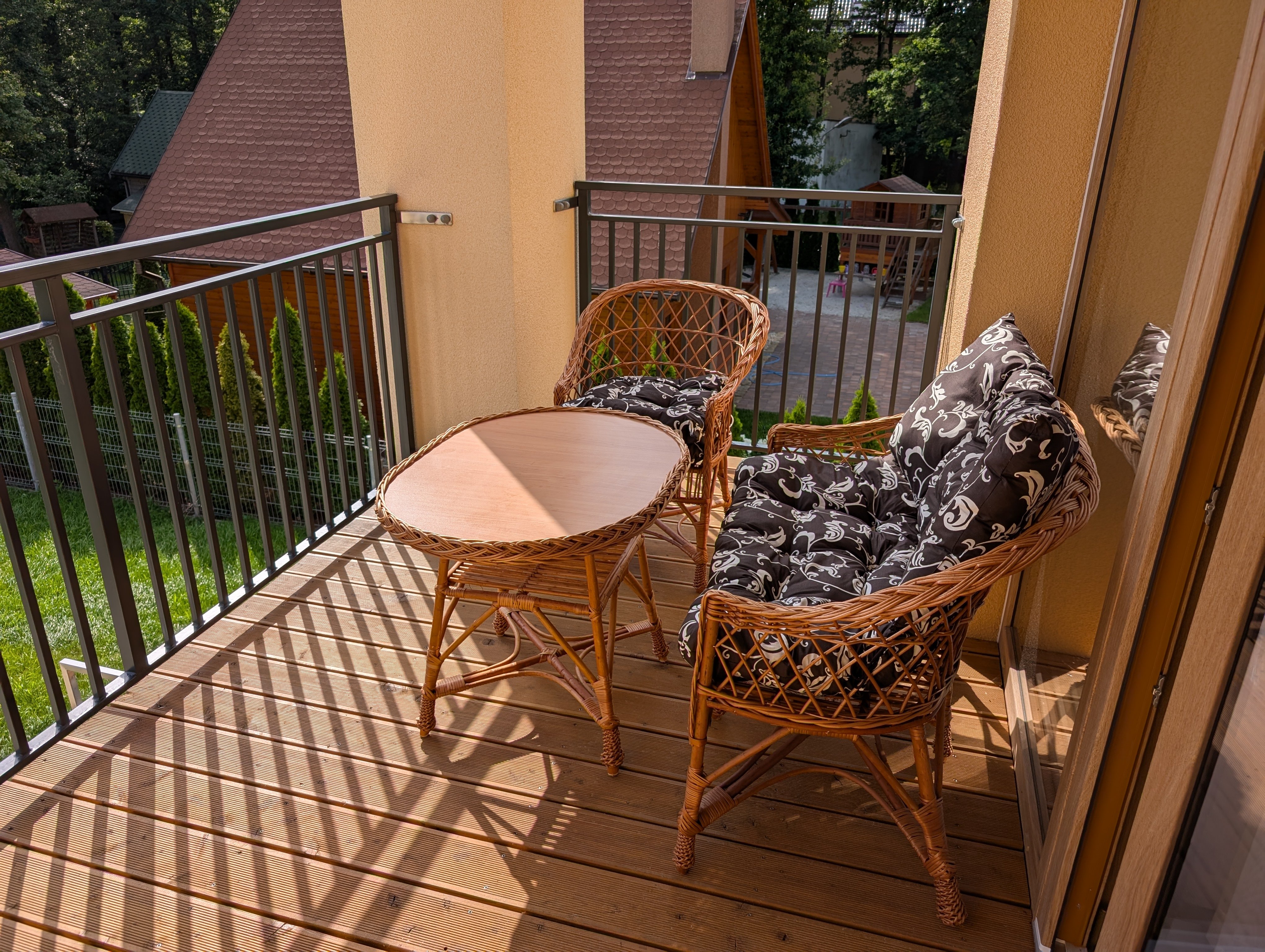 Dysponujemy dwoma apartamentami 2-osobowymi o powierzchni 31 m2. Składają się one z salonu z aneksem kuchennym, łazienki z prysznicem i dużego tarasu (o dodatkowej pow. 10 m2) z wygodnymi meblami ogrodowymi.