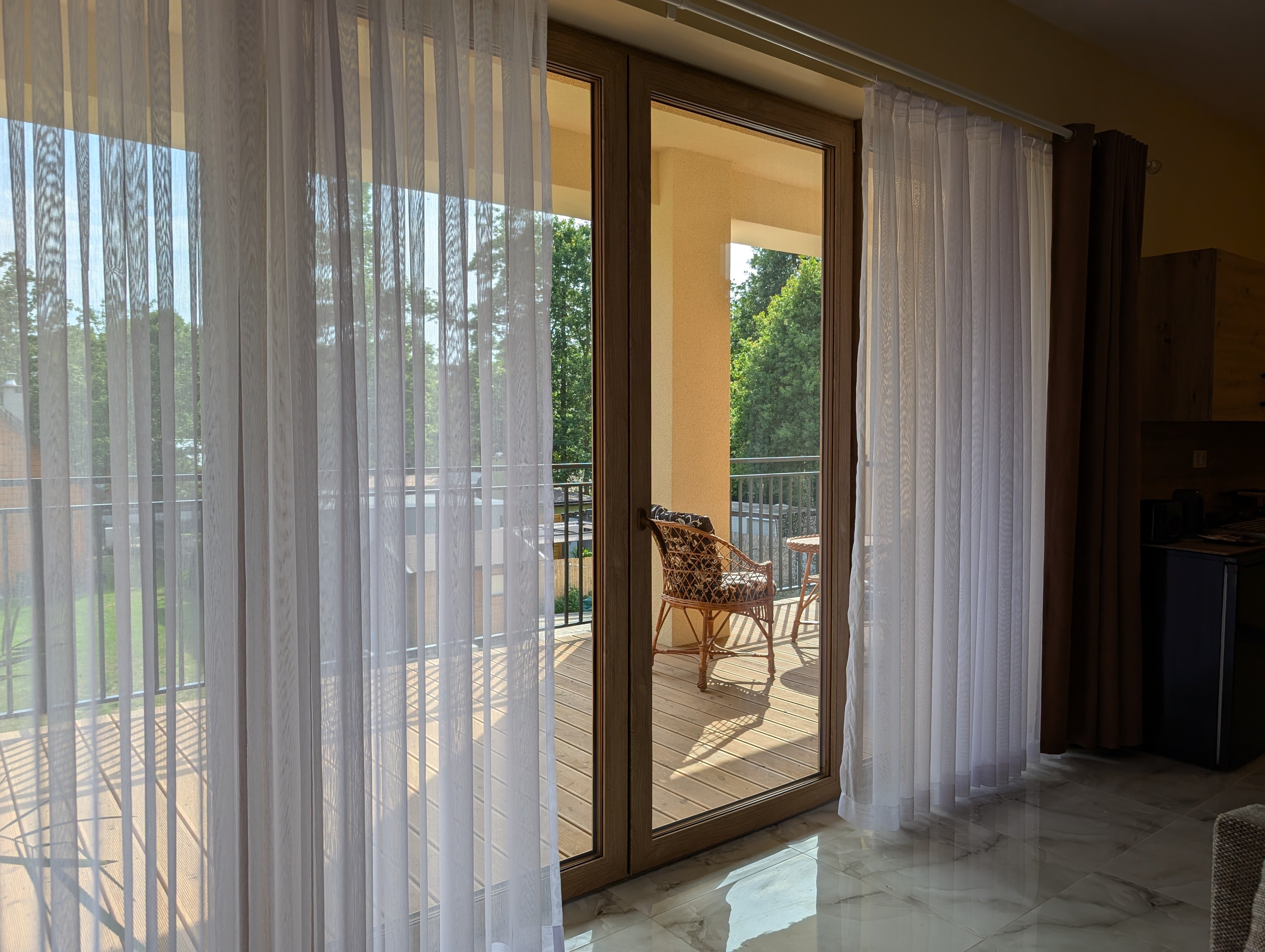 Do dyspozycji gości oddaliśmy dwa apartamenty 4-osobowe o powierzchni 49 m2. Składają się one z salonu z aneksem kuchennym, dwóch sypialni, łazienki z prysznicem i dużego tarasu (o dodatkowej pow. 22 m2) z wygodnymi meblami ogrodowymi.