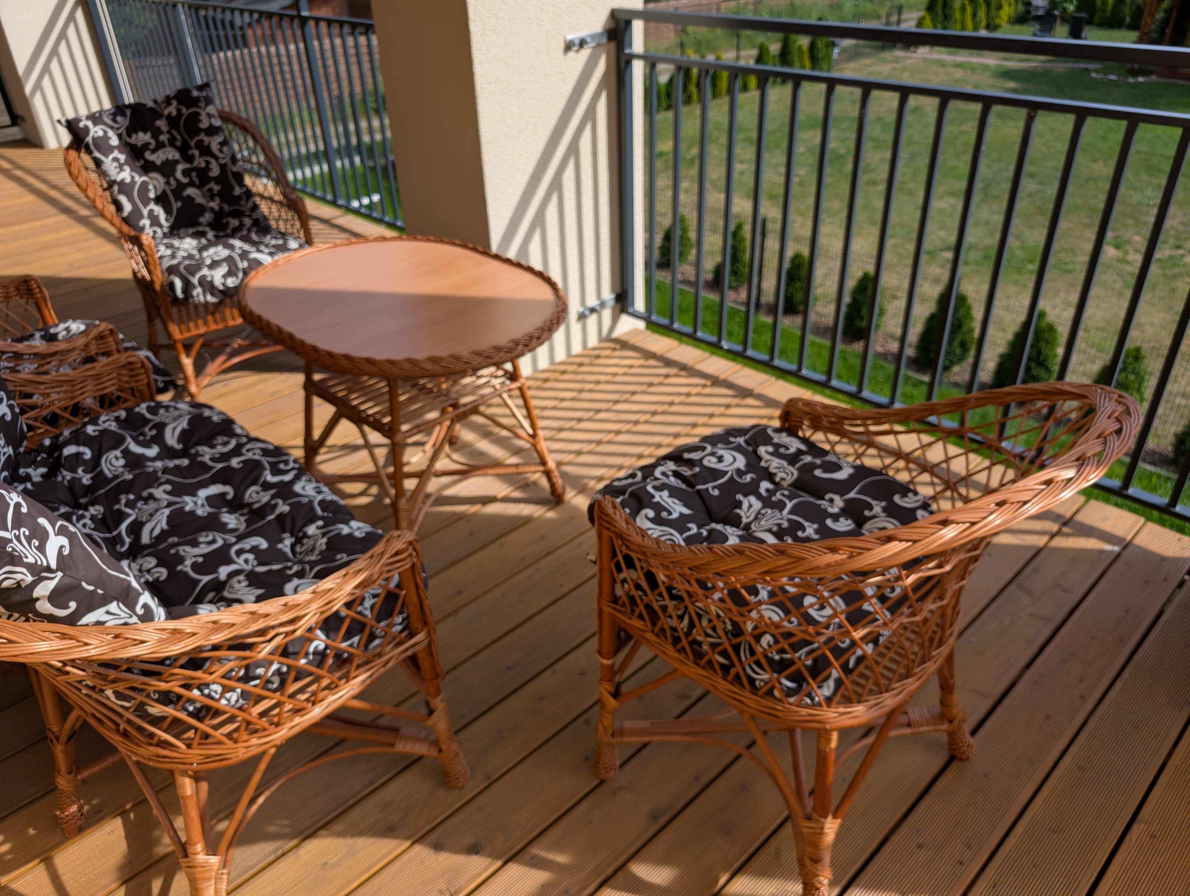 Składają się z salonu z aneksem kuchennym, dwóch sypialni, łazienki z prysznicem i tarasu. Są w pełni wyposażone. Dysponujemy dwoma apartamentami tego typu.
