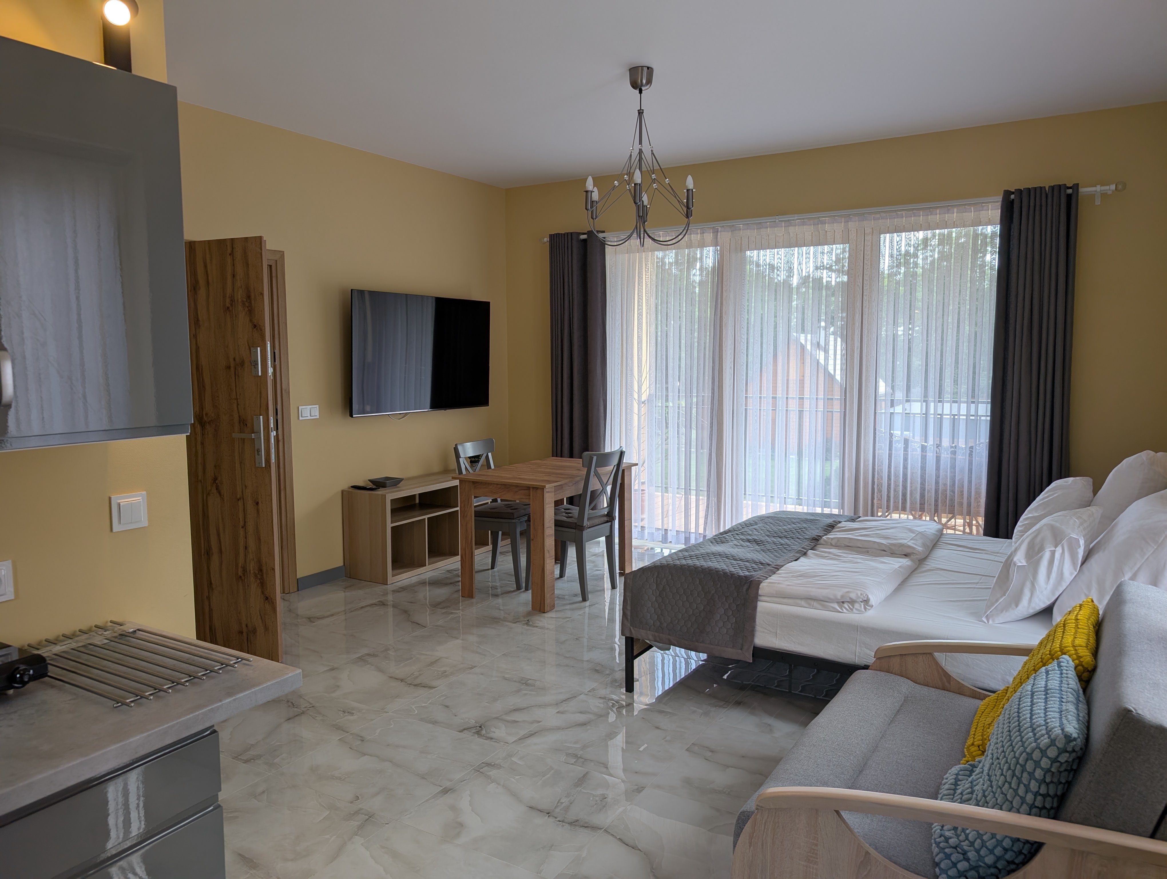 Mamy przyjemność zaprosić Państwa do świeżo oddanego do użytkowania (w 2025 r.) domu mieszczącego cztery apartamenty na wynajem. Obiekt zapewnia bezpłatny parking, WiFi, taras widokowy na dachu budynku, strefę rozrywki w podziemiach. Wszystkie apartamenty dysponują komfortowym wyposażeniem. W pobliżu znajduje się piaszczysta plaża, promenada oraz wiele barów i restauracji. Naprzeciwko budynku znajduje się sklep spożywczy.
